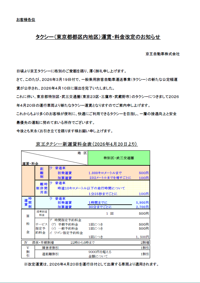 日頃より京王タクシーに格別のご愛顧を賜り、厚く御礼申し上げます。